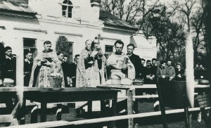 Ks. Jan Kotorowicz w okresie okupacji niemieckiej przy dworze w Moroczynie, fot. zbiory M. Kotorowicz