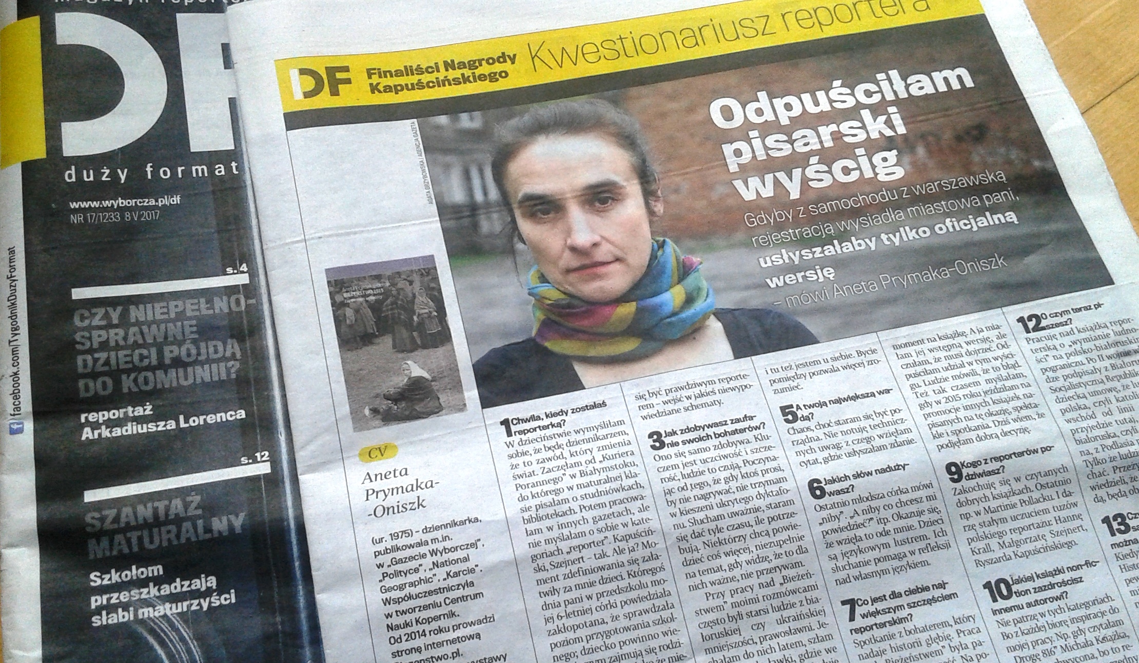 Cała rozmowa: w papierowym wydaniu DF i na: http://wyborcza.pl/duzyformat/7,127290,21768215,nagroda-kapuscinskiego-2017-finalisci-aneta-prymaka-oniszk.html Tekst ukazuje się w ramach rozmów z finalistami Nagrody im Ryszarda Kapuścińskiego za Reportaż Literacki